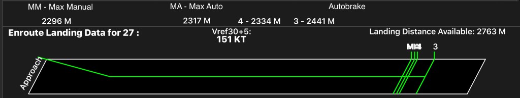 AUTOBRAKE MAX beállítással földet érünk olyan módon, hogy nem nyitunk tolóerő elfordítót és megvizsgáljuk azt, hogy a földet érés pillanatában mekkorát lassul a repülő. 2-3000 óra gyakorlattal a típuson az ember ugyan féktávolságot nem tud becsülni, de az érzi, hogy “derekas” -e a fékezés, vagy “a HúBameg ez korcsolyázik“ kategória.