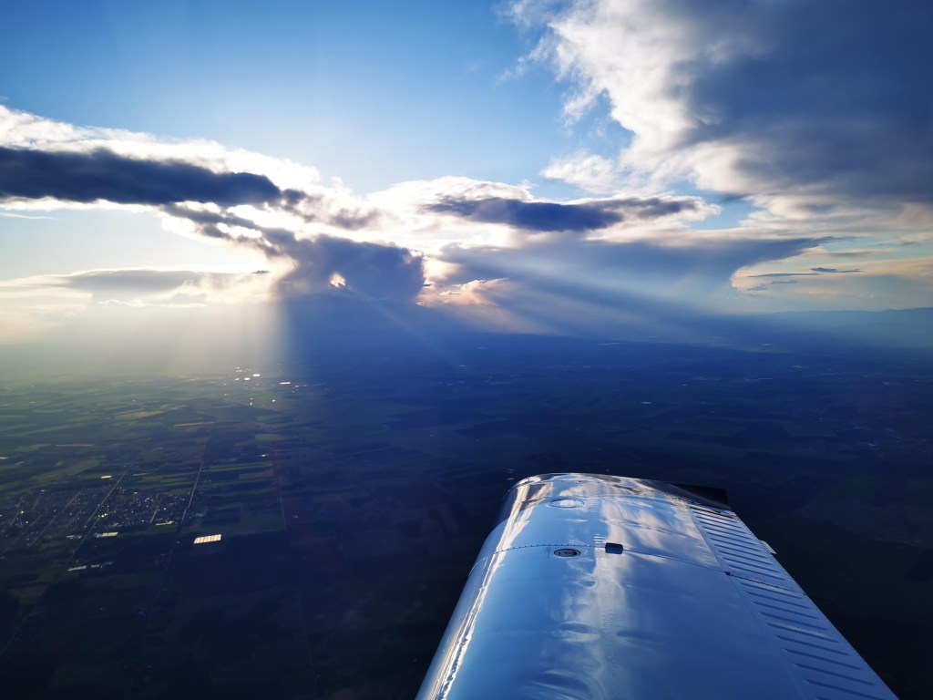 Egy útvonalrepülés során egyébként is figyelni kell az időjárás alakulását, de ma különösen meg kellett figyelni a felhőzet mozgását, a szelet és az útvonalat úgy kellett megválasztani, hogy adjak magamnak esélyt arra, hogy rövidíteni tudjak szükség esetén. Különösen fontos volt tegnap az időjárás gondos megfigyelése, mert észak felől jött egy havazás, rossz látást és szelet hozó időjárási képződmény. A leszálláshoz olyan kitérő repülőteret kellett választanom, ami szükség esetén biztosan alkalmas időt ígér. Így esett a választás Budaörs mellett Kiskunlacházára is. Lacháza egy kicsit kiesik, talán nehezen jutunk haza, de ilyenkor sosem azon kell gondolkozni, hogy ha leszállok, onnan hogyan megyünk haza, hanem azon, hogy ha leszállok, akkor biztonságban tudhatom magunkat. A közlekedés ebben az esetben másodlagos.