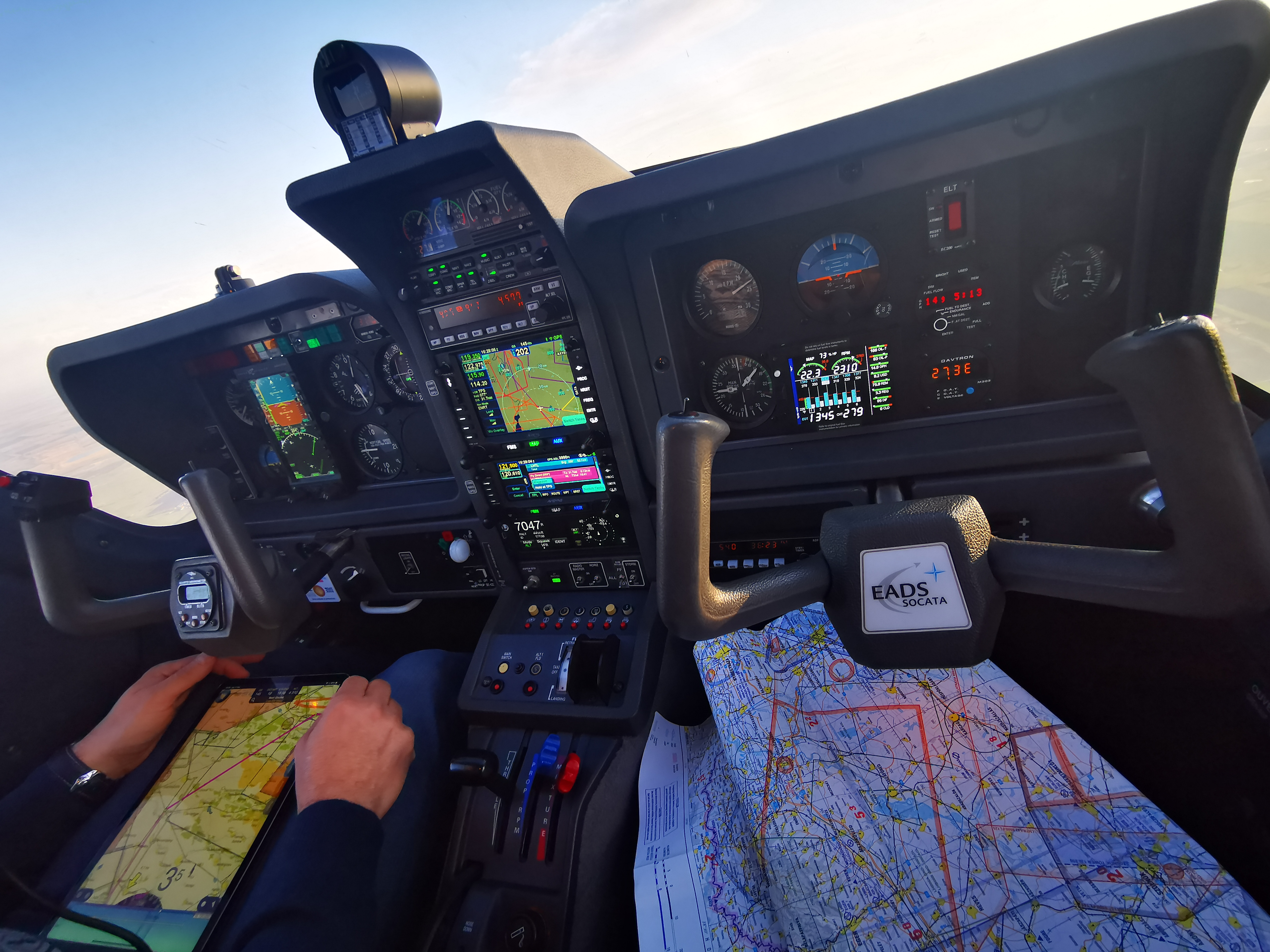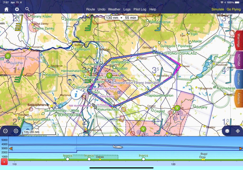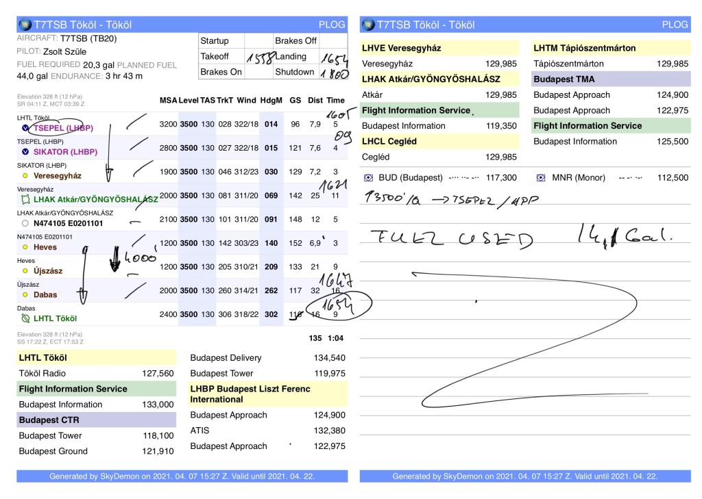 A repülést tököli indulással terveztem a párommal, aki hamarosan megkezdi a PPL tanulmányait. Ennek keretén belül ő látta el a segédnavigátori teendőket a fedélzeten, ha a biszbaszok (ahogy sokan nevezik) felmondanák a szolgálatot. Ő húzta az ujját a térképen az útvonalon, és azonosította nekem a településeket, ahogy azt itt a neten többen javasolták 🙂 arra az esetre, ha minden felmondaná a szolgálatot.