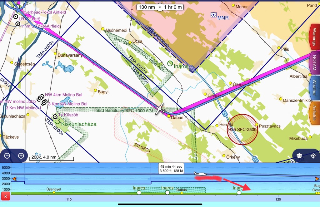 A koordináció után, 3500 láb magasságig tudtam emelkedni majd áttérés Bp Approachra felszállás után a belépési engedély megszerzéséért. Fontos, hogy amit a Tököl Rádió közvetít, nem feltétlenül a belépési engedély.